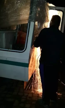 經(jīng)與客戶溝通,最終決定將司機室的把手切割掉。