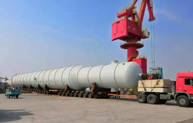 該船貨物是廣利港腹地企業(yè)定制的“脫乙烷塔”和“丙烯丙烷塔”,最大件長56米、體積1144立方米、件重280噸。貨物自大連旅順港裝船,通過水路聯(lián)運(yùn)的方式,經(jīng)廣利港轉(zhuǎn)運(yùn)至企業(yè),使公路運(yùn)輸?shù)木嚯x縮減至最低,極大降低了企業(yè)的運(yùn)輸成本