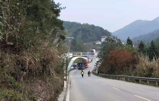 大件運(yùn)輸是這樣在鄉(xiāng)鎮(zhèn)路上前行的