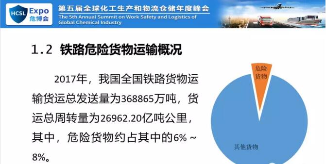 先說我們國家的危險貨物運輸?shù)臓顩r。2017年我們?nèi)珖F路貨運發(fā)送總量原定于37萬噸,危險貨物占到6%到8%的比例,看著量不大,因為本體量大,所以6%到8%也是很大的數(shù)字。我們目前國家國內(nèi)的危險貨物運輸方式一個是罐裝運輸,液體類的,一個是集裝箱,有十幾個品種。再一個是罐箱,我們國家大概有四到五種,而且比較難。比如說我們的LNG在2015年左右我作為組長評審?fù)ㄟ^,但是到現(xiàn)在上不了線,運不了。另外就是獨立專用車,從2005年鐵路取消了零擔運輸以后,要求危險貨物鐵路運輸必須是整車,那這個個別的貨物也可以散裝,但是主要是這種方式,這是目前國內(nèi)的運輸方式的情況。