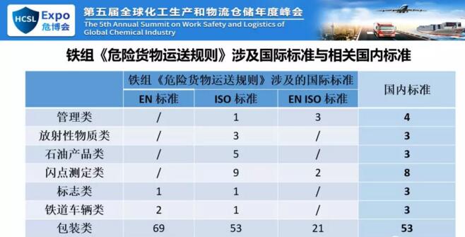 說到問題這一塊,我們目前的解決方案就是目前一帶一路的解決方案還是回到頭里。我們的解決方案是正好國家標準委去年要對整個危險化學品的規(guī)章做標準的規(guī)章體系,王總是組長之一,我代表鐵路行業(yè)參加了。當時我知道這個事很高興,我提出了六大標準體系,主要是從廠商標準、工具標準以及人員標準等,這兩天看國際友人說了很多,對我們的人員不夠,還有包裝標準和裝卸標準,這六個標準拿下來以后,應(yīng)是和國際接軌了。就講到這兒,謝謝大家。
