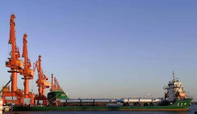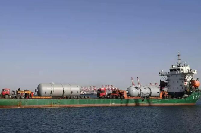 該公司結(jié)合駁船運(yùn)輸及作業(yè)特點(diǎn),利用牽引車將平板車上的3件設(shè)備從駁船上卸至碼頭,然后將另外2件設(shè)備移至駁船上,一次性成功作業(yè)5件化工反應(yīng)器罐體,這是營口港區(qū)首次實(shí)現(xiàn)大件設(shè)備“滾裝滾卸”,也創(chuàng)下了單船裝卸大件數(shù)量新紀(jì)錄。