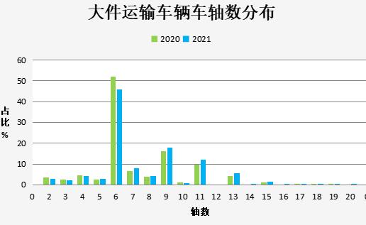 圖 2021年和2020年大件運(yùn)輸車輛車軸數(shù)分布對(duì)比