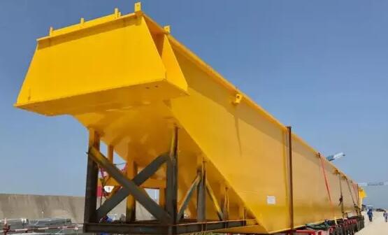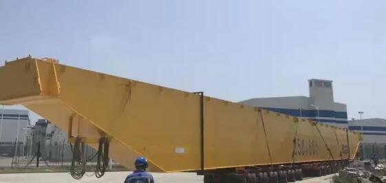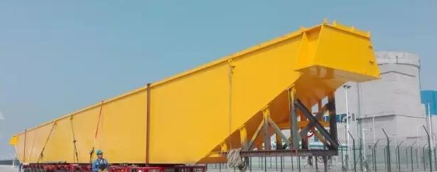 2017年8月5日上午11點(diǎn)45分,承載著350t行車(chē)主梁的液壓軸線(xiàn)車(chē)緩緩?fù)O?,操作人員憑借精湛的駕駛技術(shù)實(shí)現(xiàn)車(chē)輛一次準(zhǔn)確到位,使設(shè)備重心與吊車(chē)的吊鉤幾乎保持在同一條垂直線(xiàn)上。隨著主梁緩緩吊起,車(chē)輛駛出了吊裝區(qū)域,標(biāo)志著福清核電5號(hào)機(jī)組350t行車(chē)主梁的運(yùn)輸任務(wù)圓滿(mǎn)結(jié)束。