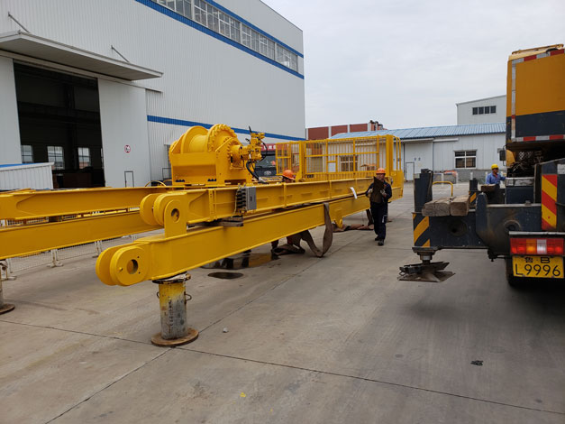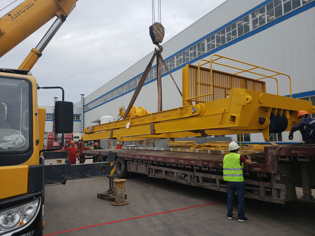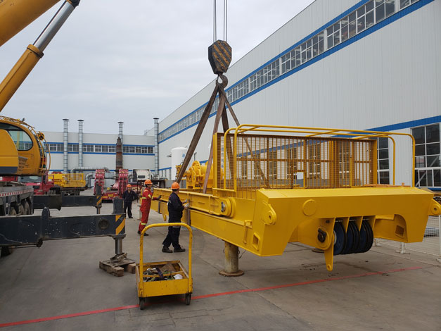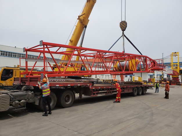 2018年5月21日凌晨5:30分左右,9輛貨車從青島市黃島區(qū)途經(jīng)青蘭高速發(fā)往青島城陽區(qū)天時海洋石油裝備有限公司,此次淳遠服務的項目是“保稅物流一日游”業(yè)務。大約7點30分,貨車依次駛入天時海洋廠區(qū)內(nèi),此次運輸?shù)呢浳锟傊貫?69噸的設備機組,上午8時許,操作正式開始。